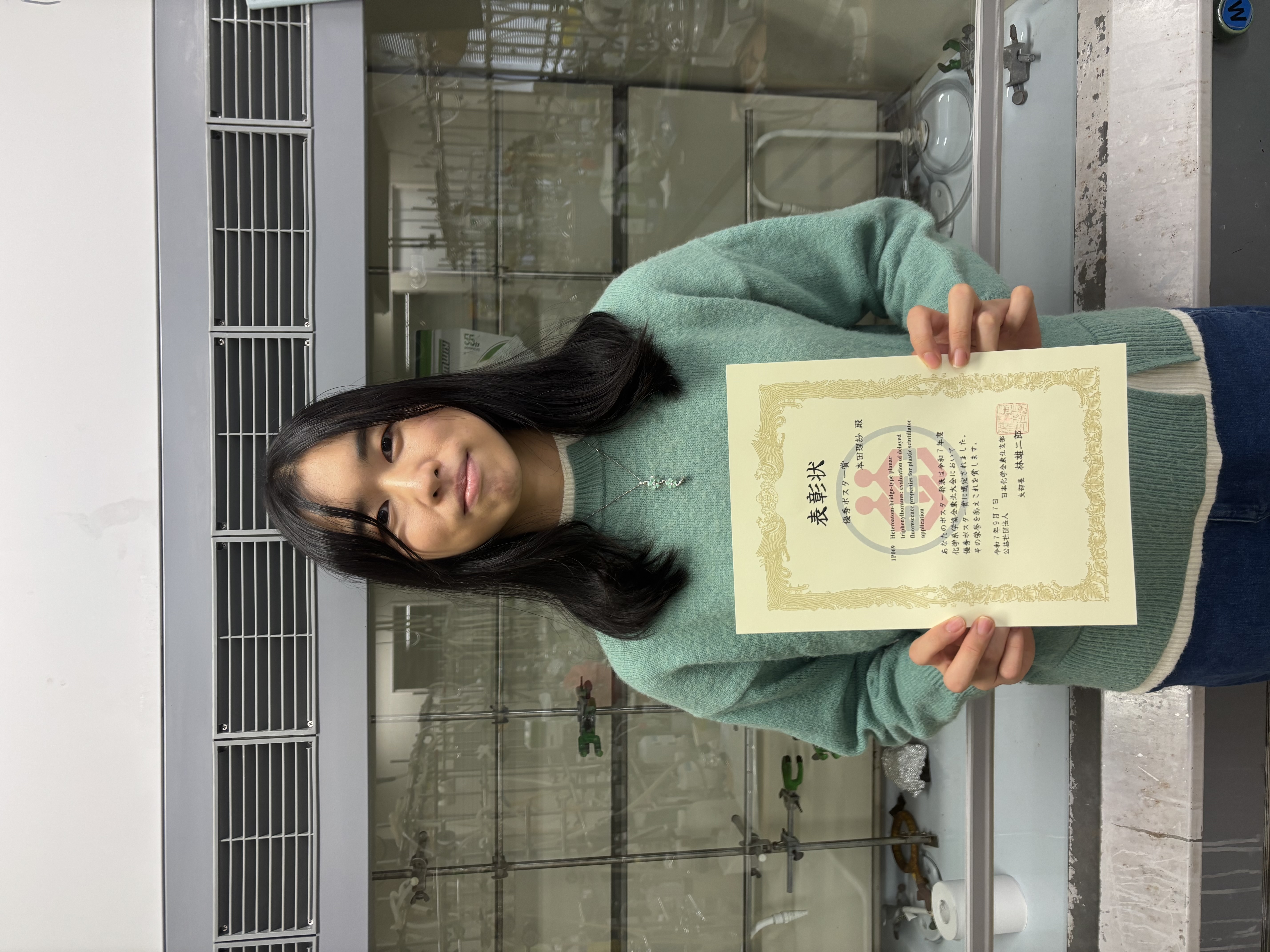この度は、令和7年度化学系学協会東北大会においてポスター賞に選出いただき、大変光栄に存じます。